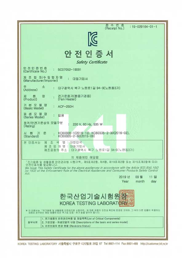 ACF-250H-안전인증서 > 제품인증