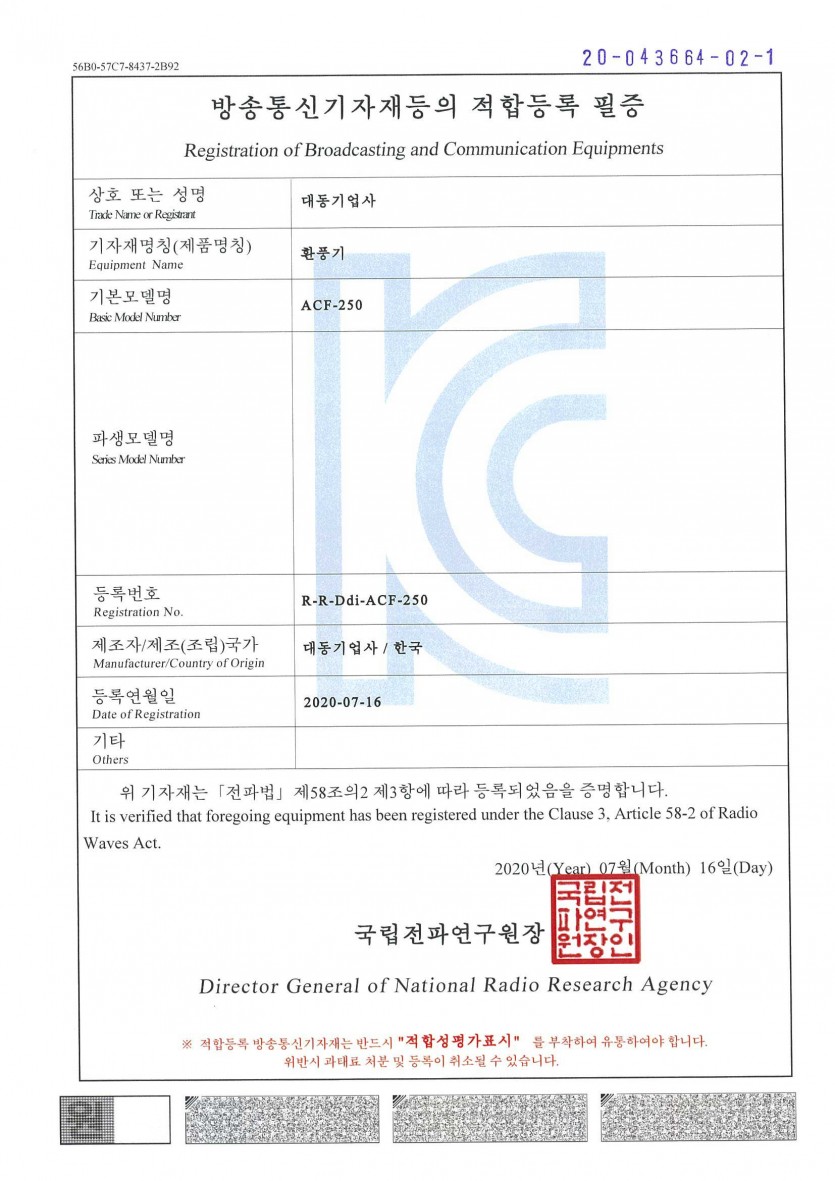 ACF-250 전자파인증서 > 제품인증